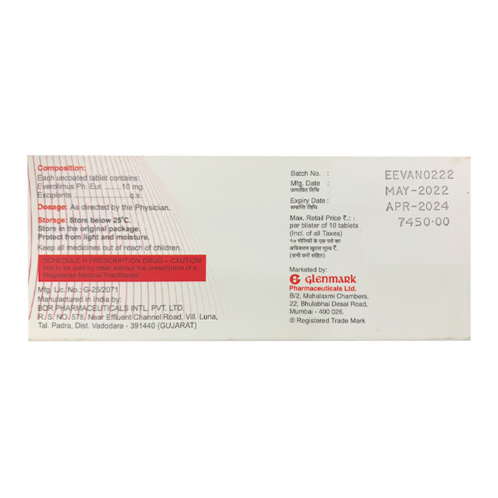 Evermil 10 Everolimus 10mg Glenmark 10 viên – Điều trị ung thư